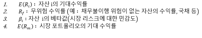 1번은 자산의 기대수익률, 즉 주식이라면 종목의 기대수익률이라고 보시면됩니다.