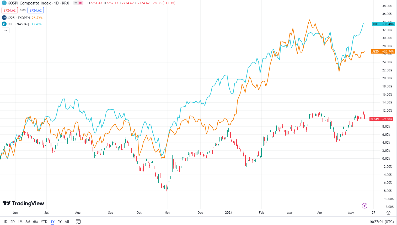 1. 주요 지수 근황(KOSPI, NSADAQ,니케이225)
