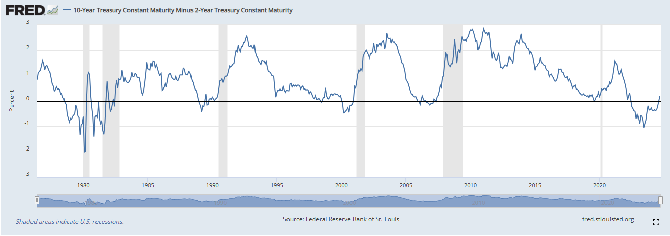 최근 워렌 버핏 회장이 현금 비중을 늘리고 있고 그 이유는 장단기 금리차 역전이 해소되어 경기침체를 예상하여 현금을 늘리고 있는 것으로 확인됩니다.
