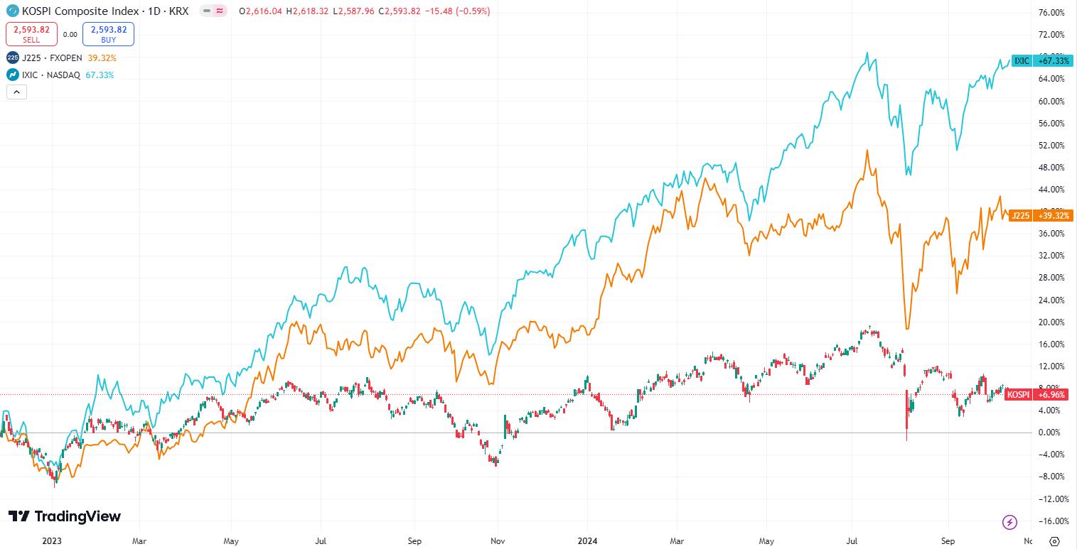 1. 주요 지수 근황(KOSPI, NSADAQ,니케이225)